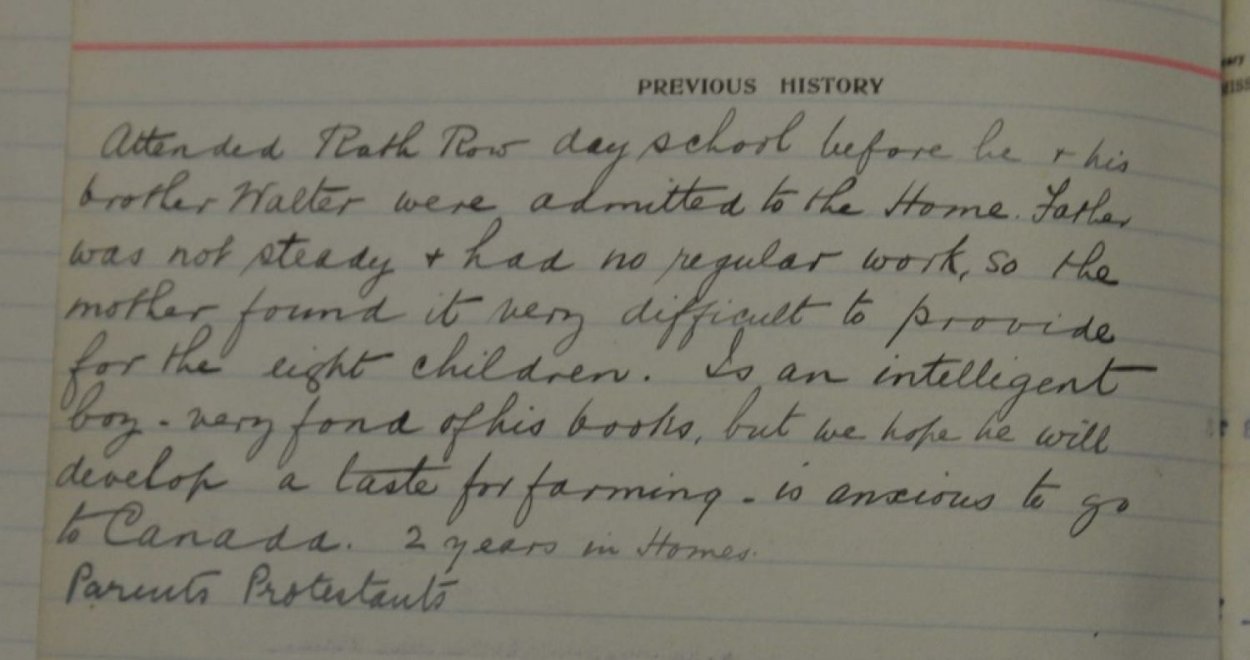| Year / Age Arrived in Canada as BHC | 1911 / 15 |