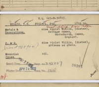 | Next of Kin / Relationship / Location | Willis, Alice, Mother, Shoreditch, London, England // Willis, Violet, Sister |