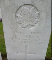 Burial: Aubigny Communal Cemetery Extension, Pas de Calais, France Plot: IV. B. 37 CWGC Grave: T G Willis Findagrave # 56155238 Thomas George Willis